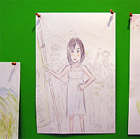 その場で子供達が絵を描いて、それを壁に貼ってるというまったりした場所なんですが…