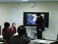 受賞のコメントをする監督。背後では健二が最後のエンターキーをプッシュ。