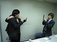 幸村さんと細田監督、お互いに記念写真を取っている。
