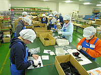 で、それを↓の画面奥の人たちが片っ端から5コマずつ切って箱に入れていく。